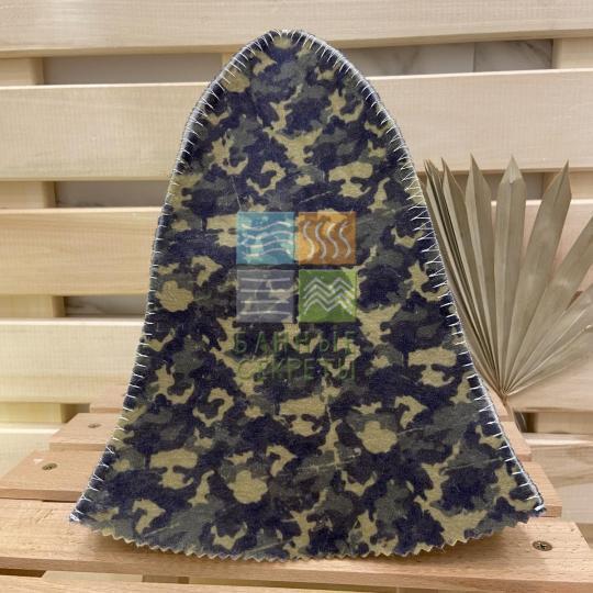 Шапка выполнена из фетра, который обеспечивает отличную теплоизоляцию. Цветовая гамма включает тёмно-синий и зелёный цвета с камуфляжным узором, что делает её привлекательной для любителей outdoor стиля. Размер шапки универсален, что позволяет носить её людям с различными размерами головы.