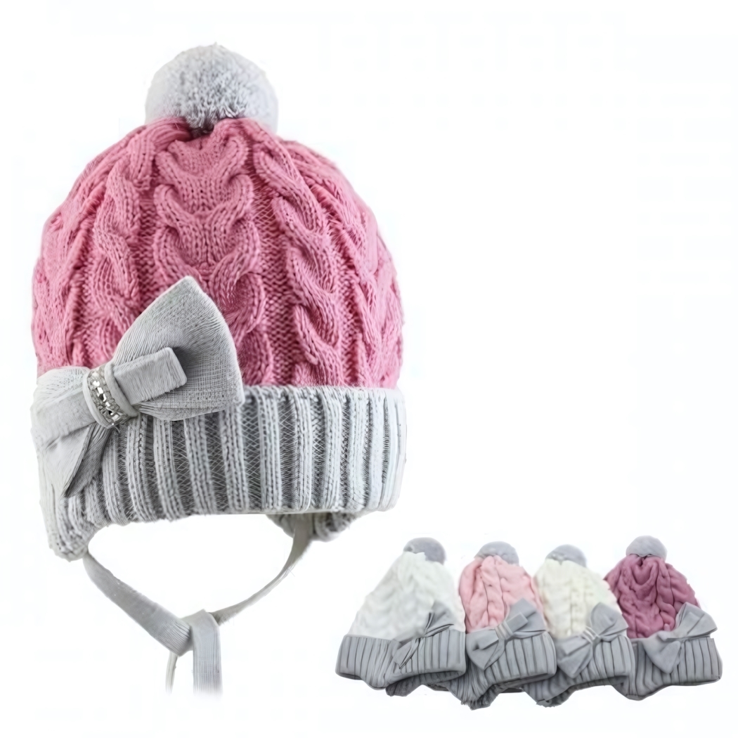 Шапка для девочек "NELLI" р.50-52, акрил/полиэстер, с помпоном и бантом