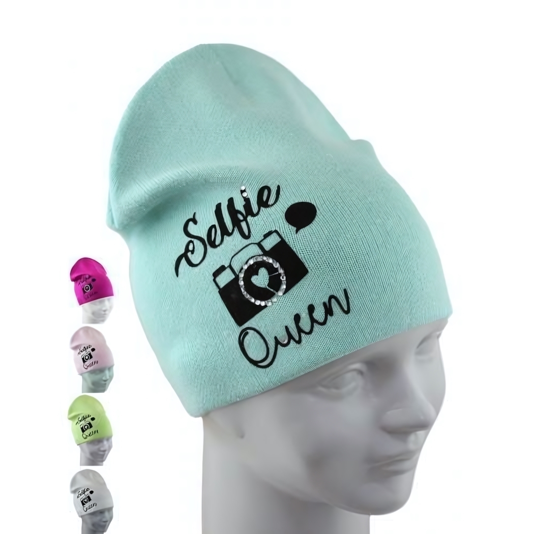 - Оригинальный дизайн: Светло-голубой цвет и забавный принт "Selfie Queen" делают эту шапку ярким акцентом в гардеробе вашей девочки.