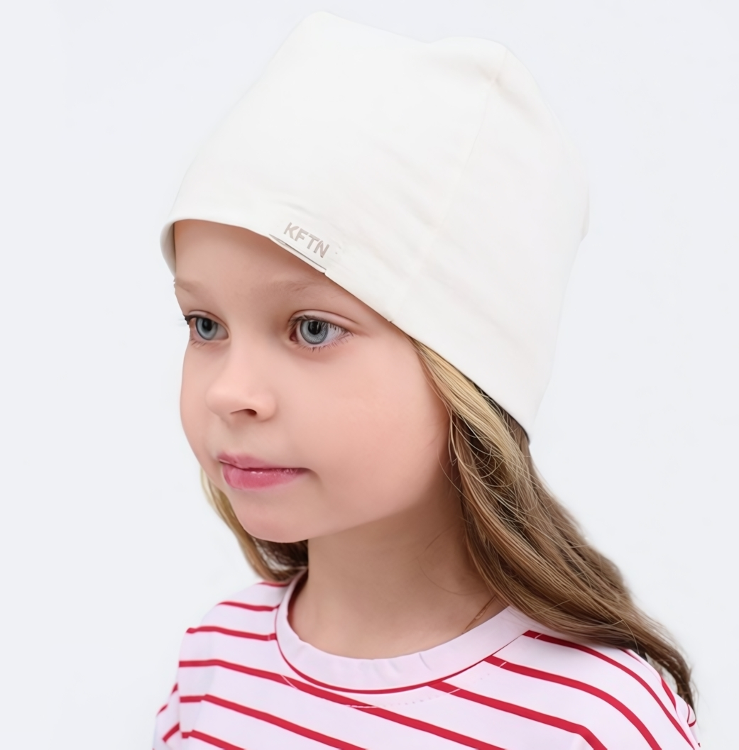 Шапка имеет удлинённую форму, которая свободно сидит на голове, не стягивая и не причиняя дискомфорта. Она отлично подходит для прогулок, поездок в школу или детский сад, а также активных игр на улице. Молочно-белый оттенок легко сочетается с любой одеждой, придавая образу лёгкость и чистоту.