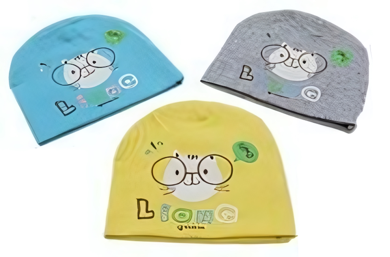 Трикотажная детская шапка с рисунком мультяшного кота