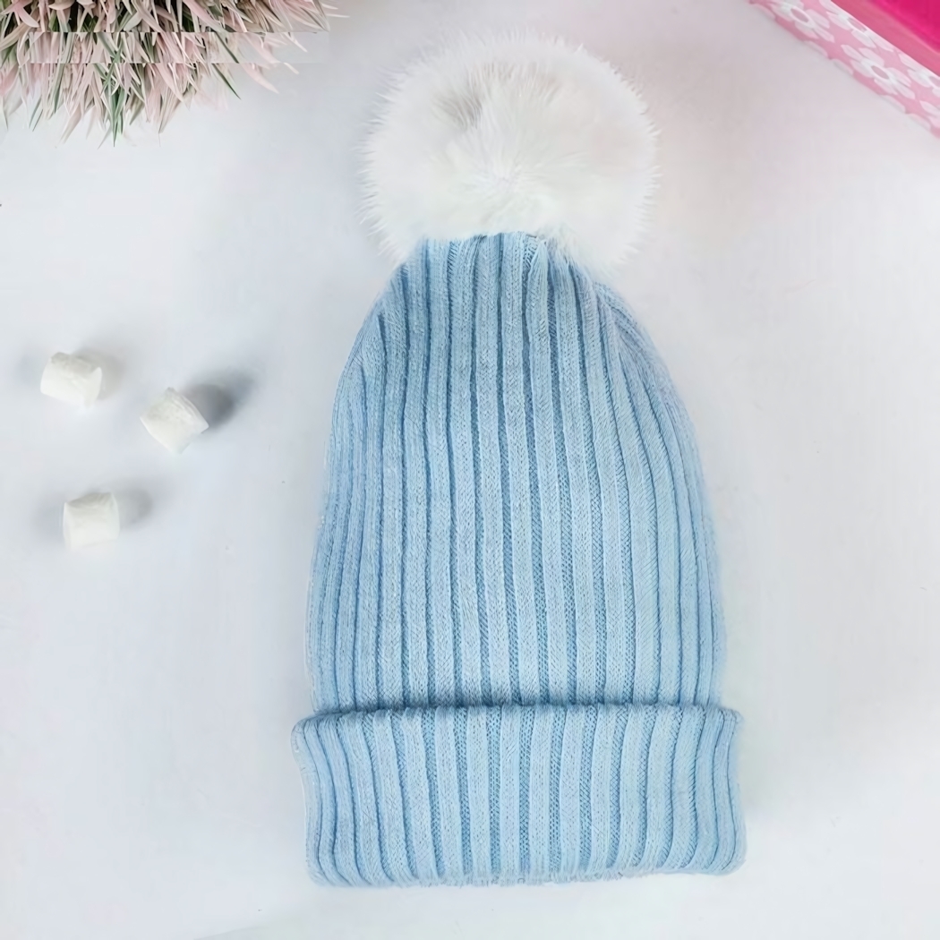 Подарите своему ребенку тепло и комфорт с этой очаровательной вязаной шапкой. Нежный голубой цвет и милый помпон делают ее стильным аксессуаром для маленьких модников и модниц. Шапка идеально подходит для прогулок в прохладную погоду, обеспечивая надежную защиту от ветра и холода.
