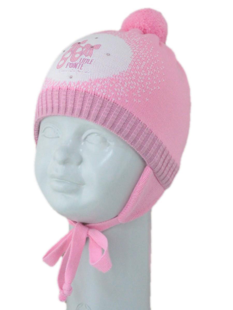 Шапка детская теплый комфорт, розовый, размер 46‑48, акрил + хлопок, помпон, завязки, аппликация «little pointe»