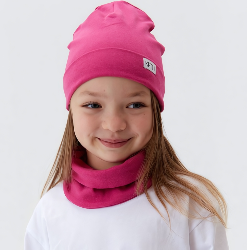 Эта шапка в комплекте с удобным шарфом-снудом станет идеальным аксессуаром для демисезонных прогулок. Ярко-розовый цвет добавит образу нежности и жизнерадостности, а мягкая ткань подарит комфорт на весь день.