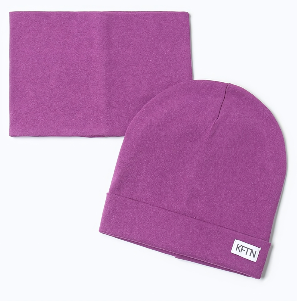 Этот комплект из шапки и снуда создан для того, чтобы ваш ребенок чувствовал себя тепло и уютно во время прогулок в демисезонный период. Мягкий трикотаж из хлопка с добавлением эластана обеспечивает комфортную посадку и сохраняет тепло, а насыщенный фиолетовый цвет добавляет стильный акцент к любому наряду.