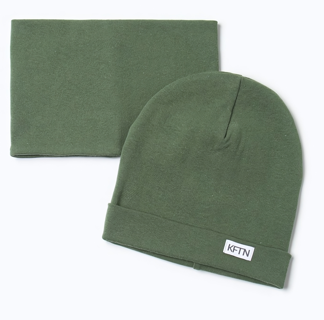 Шапка с аккуратным отворотом и эластичным краем удобно сидит на голове, не сползает и не натирает. Снуд плотно прилегает к шее, защищая от продувания, и при этом не стесняет движений. Универсальный зеленый цвет легко сочетается с различной одеждой, а аккуратная нашивка добавляет стильный акцент.