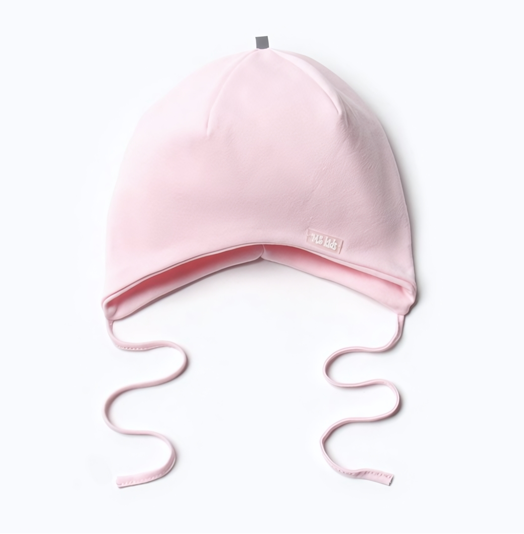 Светло-розовый оттенок сочетается с любой верхней одеждой. Мягкая внутренняя отделка предотвращает натирание нежной кожи. Благодаря компактной форме шапка не сползает при активных играх, а эластичные завязки позволяют точно подогнать обхват.