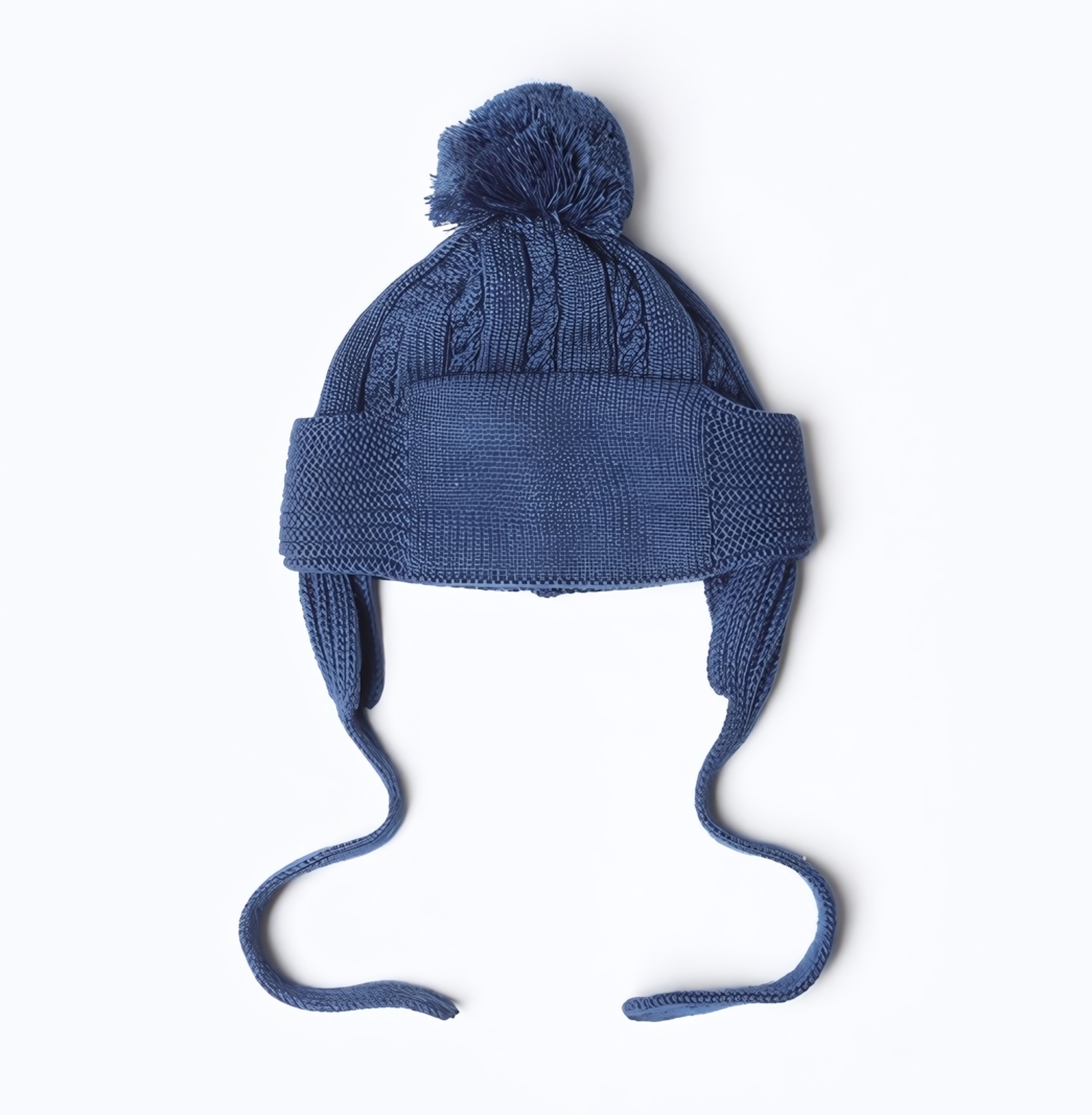Эта шапка-ушанка для детей сочетает в себе комфорт, тепло и удобство. Выполненная в насыщенном синем цвете, она легко дополняет зимний гардероб ребёнка и подходит как для прогулок на улице, так и для поездок в детский сад или школу. Мягкий помпон и декоративный узор с вертикальными косами придают изделию уютный и привлекательный вид, а завязки обеспечивают надёжную фиксацию и защиту от ветра.