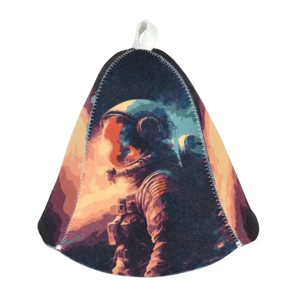 Шапка для бани и сауны 'Космонавт' создана для тех, кто ценит безопасность и оригинальный дизайн. Специальный состав материала (50% войлока, 50% полиэстера) обеспечивает надежную защиту от высоких температур, сохраняя при этом комфортное тепло.