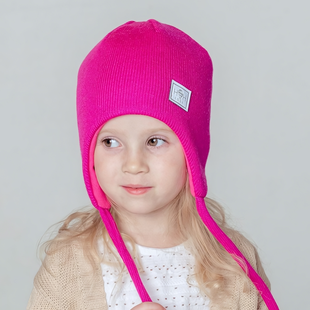 Яркая и уютная вязаная шапка малинового цвета создаст тепло и комфорт вашему ребёнку в прохладную погоду. Стильный дизайн с удлинёнными боковыми частями и завязками обеспечивает надежную фиксацию на голове, а насыщенный оттенок добавляет образу радости и оригинальности.