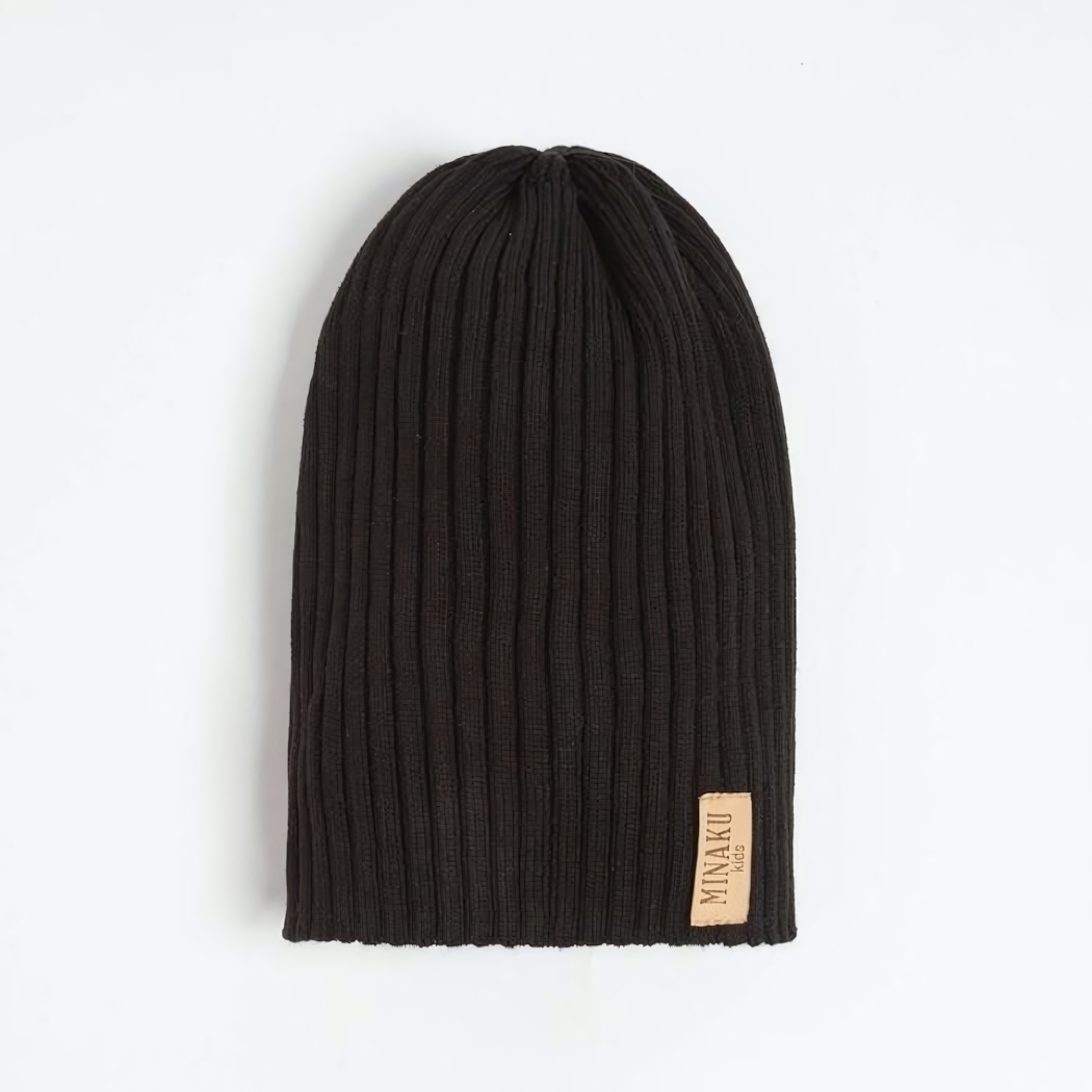 Эта шапка создана для того, чтобы ваша девочка чувствовала себя комфортно и выглядела стильно в прохладное время года. Приятная на ощупь вязаная текстура и мягкий акрил делают её идеальной для ежедневной носки, обеспечивая тепло и уют без лишней тяжести. Лаконичный чёрный цвет легко сочетается с любой верхней одеждой, а аккуратные продольные ребристые линии придают изделию современный вид.