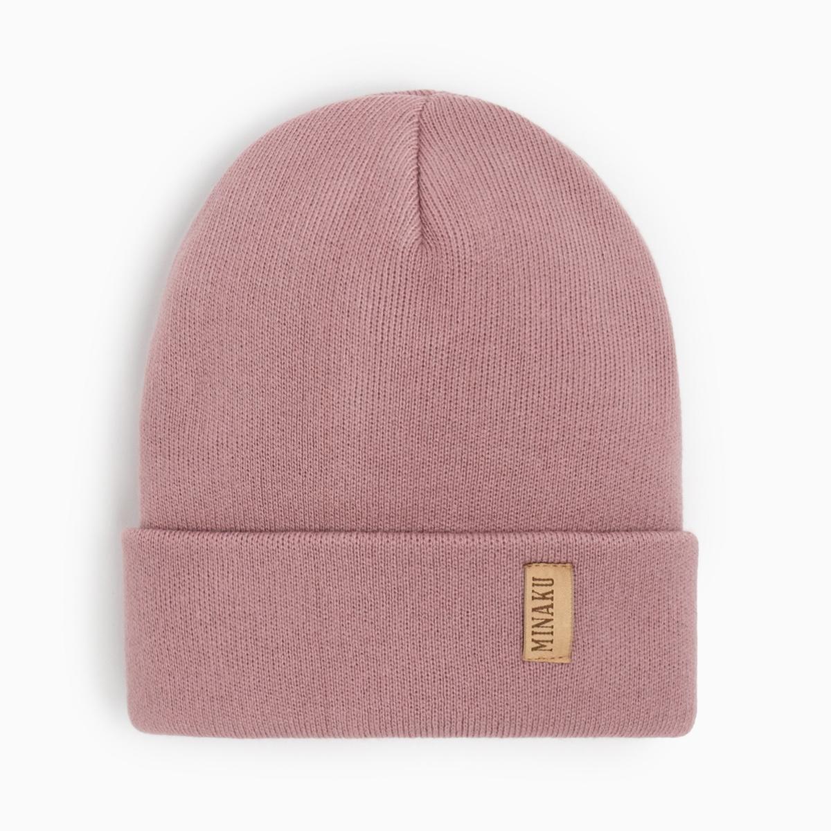Вязаная шапка-бини с отворотом в цвете сухая роза