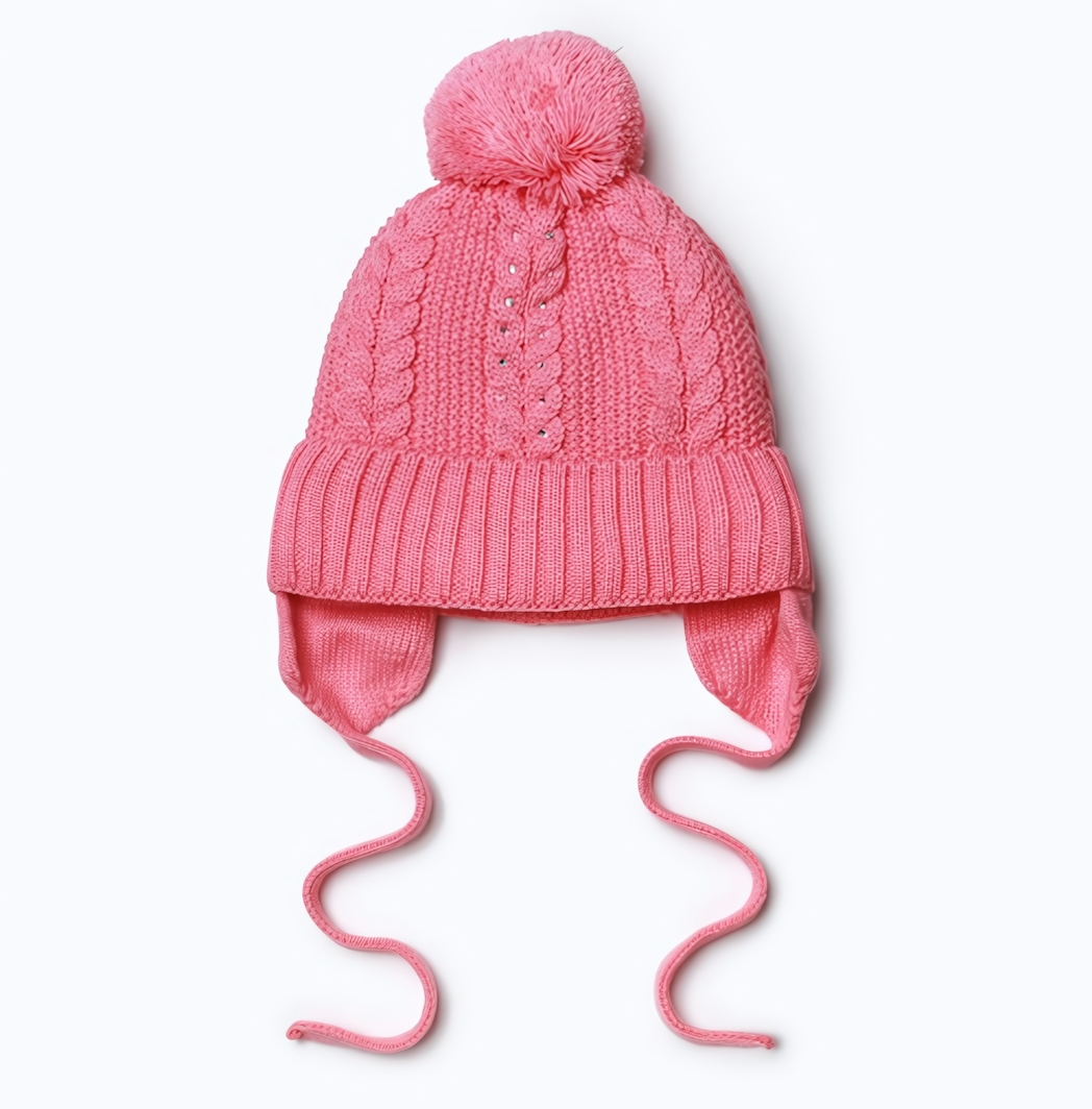 Шапка снабжена удлинёнными ушками, которые надёжно прикрывают уши и щёки, защищая от ветра. Завязки позволяют плотно зафиксировать шапку на голове малыша, предотвращая её сползание даже при активных прогулках или играх на улице.