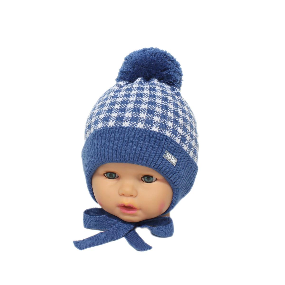 - Стильный дизайн с узором «шахматка» и пушистым помпоном