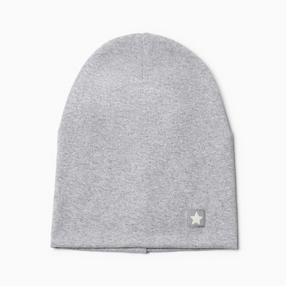 Шапка для мальчика, хлопок 95%, серый меланж, размер 50-54, нашивка звезда