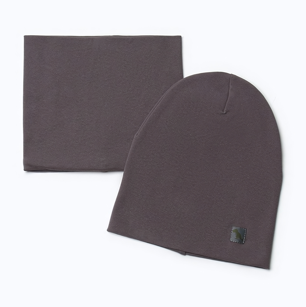 Стильная шапка с удлинённой макушкой и шарф-снуд в тёмно-сером цвете создадут комфорт и защиту в прохладную погоду. Мягкая ткань с высоким содержанием хлопка обеспечивает приятные тактильные ощущения, а добавление лайкры делает изделие эластичным и удобным в носке.