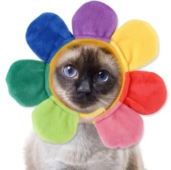 Подарите своему любимцу уникальный стиль и комфорт с оригинальной шапкой в форме цветка. Эта мягкая и приятная на ощупь модель создана для собак и кошек среднего размера и идеально подходит для создания игривого, запоминающегося образа. Яркие разноцветные лепестки моментально притягивают внимание и превращают любую фотосессию или обычную прогулку в настоящее событие.