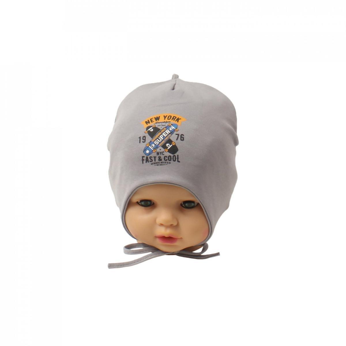 Шапка детская серая "Мегашапка" с принтом, размер 48-50, хлопок с лайкрой, для мальчика