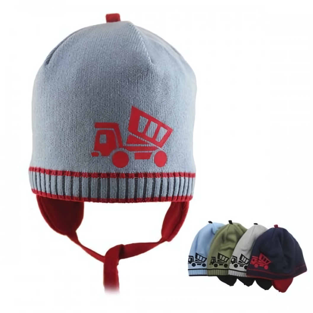 Эта вязаная шапка с завязками создана для того, чтобы обеспечить вашему ребёнку комфорт, тепло и надёжную защиту от ветра в прохладное время года. Яркий рисунок самосвала на передней части добавляет изделию индивидуальности и привлекает внимание, что особенно нравится детям.