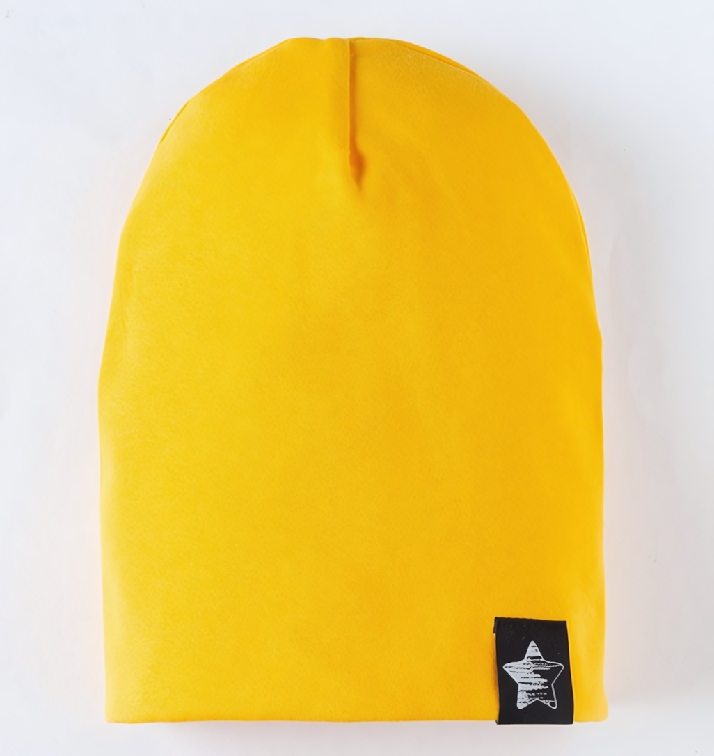Детская двухслойная шапка из хлопка в цвете горчица