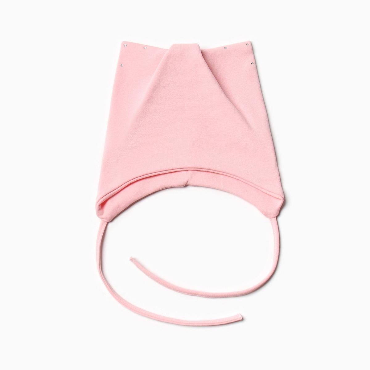 Шапка-кошка для девочки, хлопок 95%, цвет пудра, размер 42-46