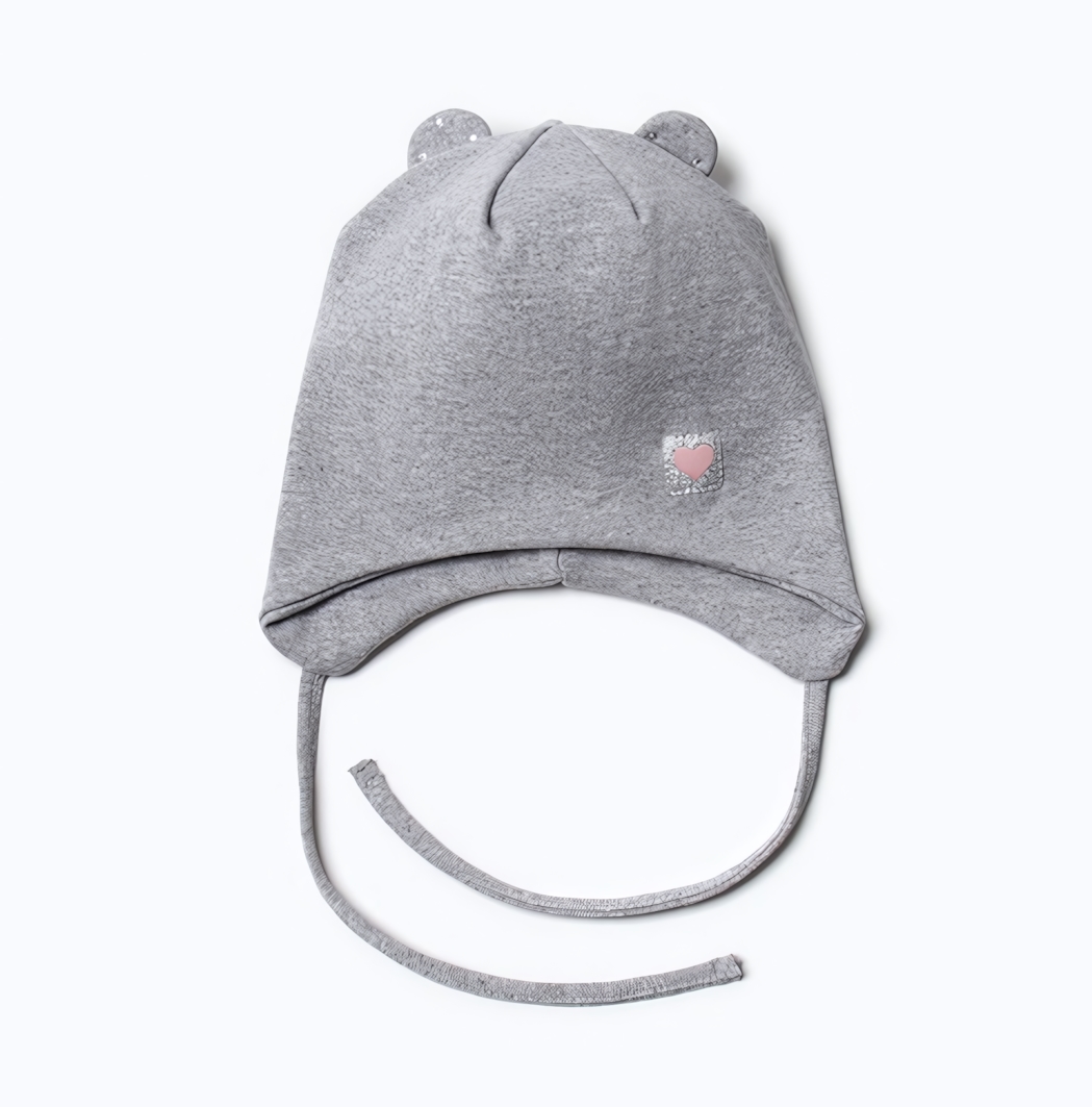 Шапка-шлем детская с ушками и сердцем, хлопок, серый меланж, р.46