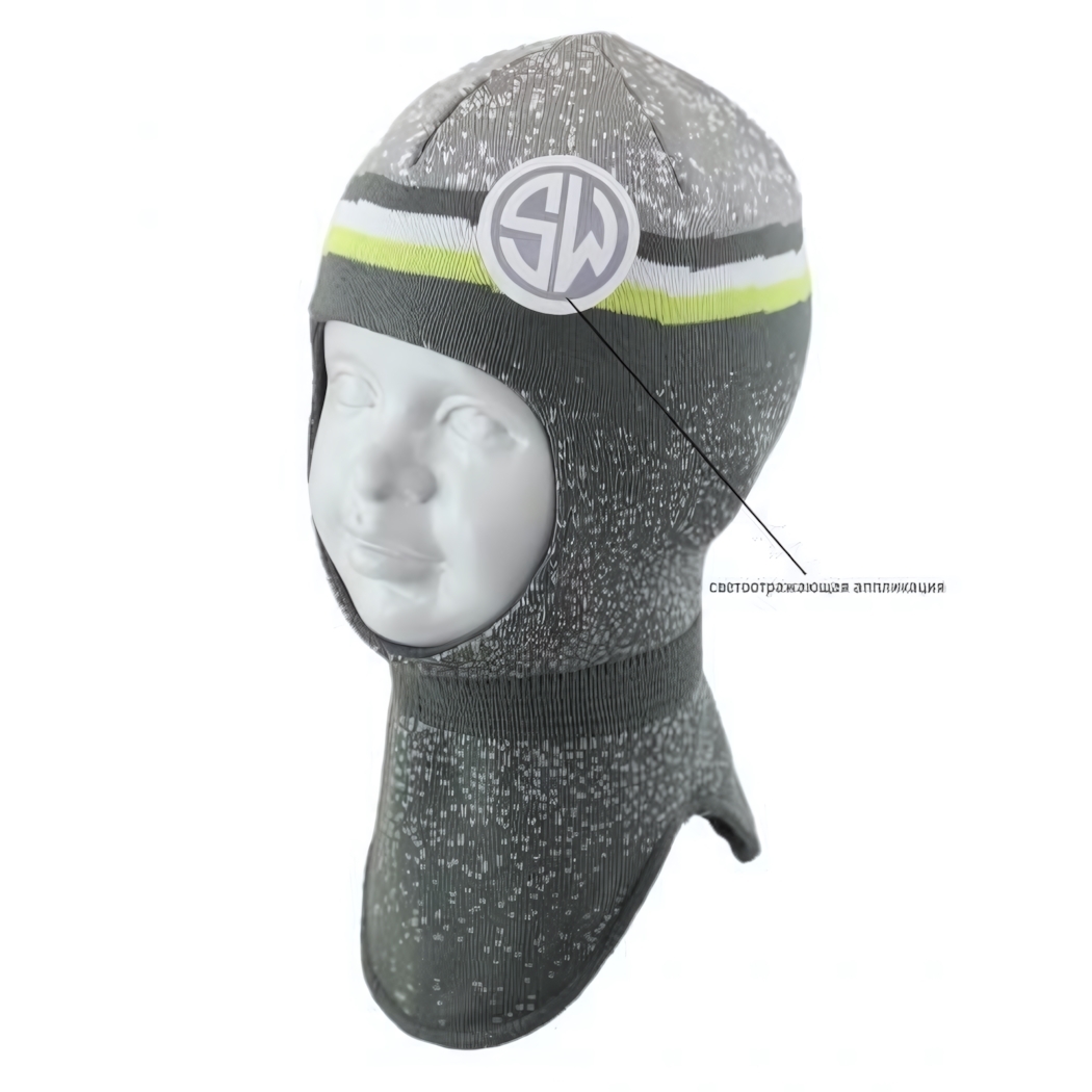 Шапка-шлем детская "SILUAN" р.50-52, серый/зеленый, акрил, светоотражающая аппликация