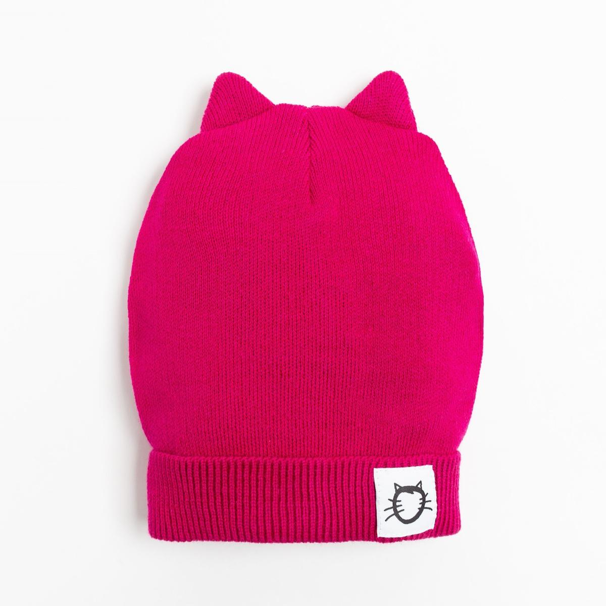 Шапка детская вязаная с кошачьими ушками, малиновый цвет, акрил, размер 46-50