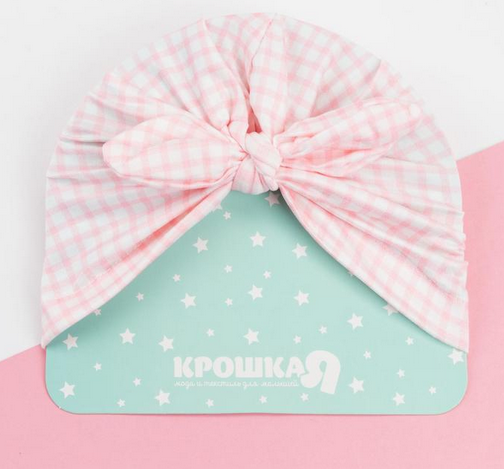 Шапочка для девочки "Бантик", розовая клетка, хлопок 100%, размер 48, стильный аксессуар