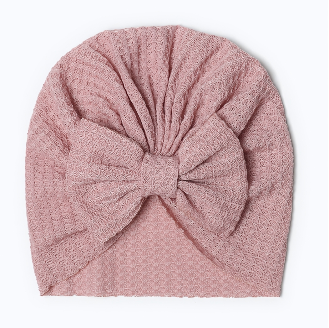 - Очаровательный дизайн: Нежный розовый цвет и декоративный бантик делают шапочку стильным аксессуаром.