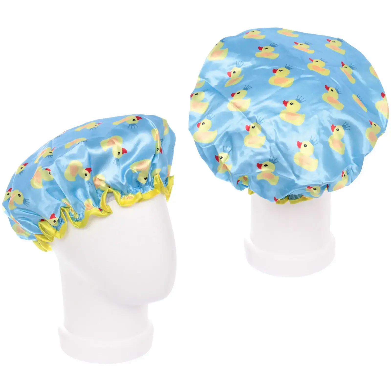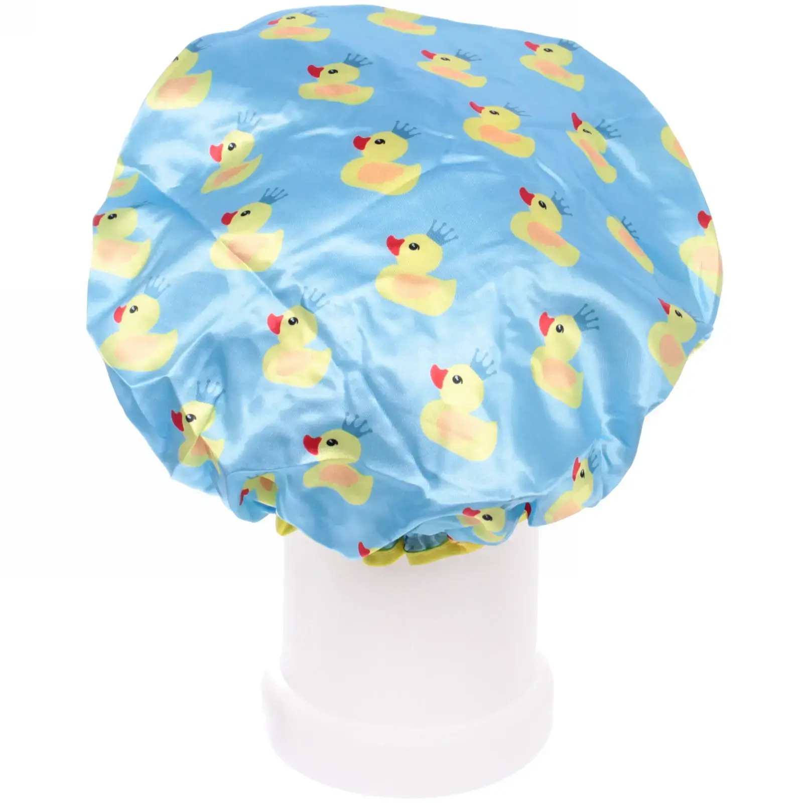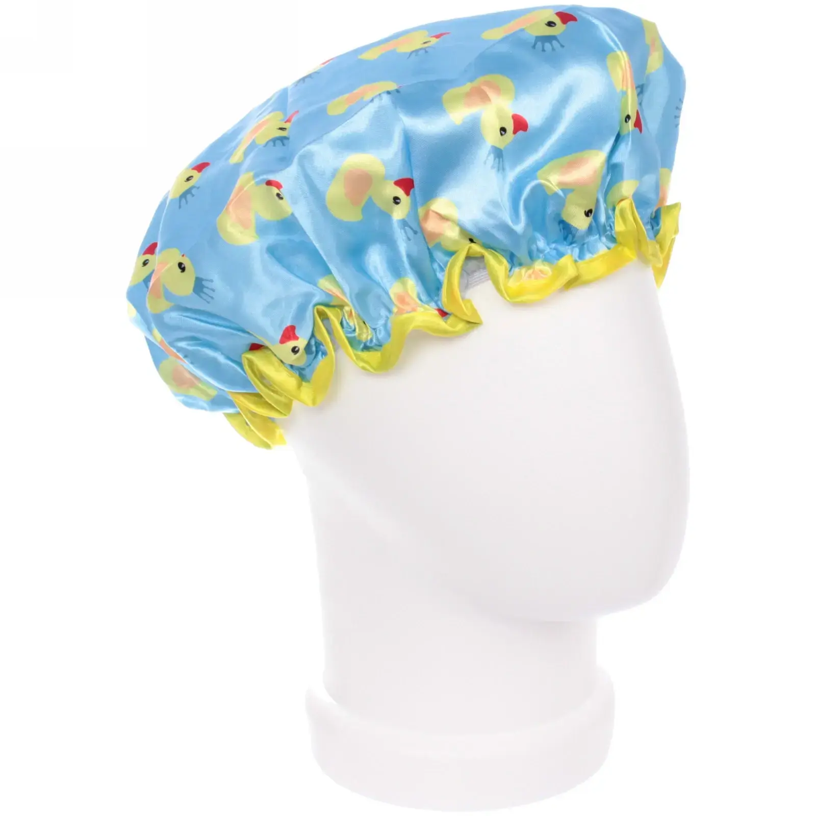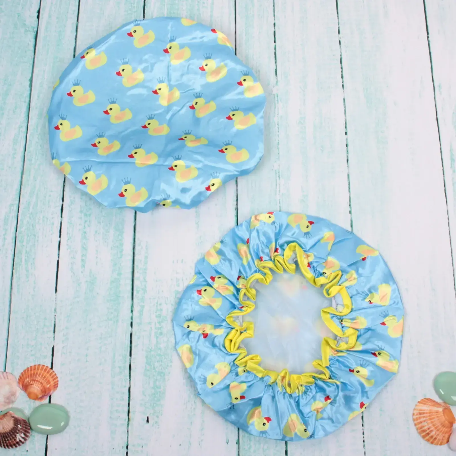 Шапочка имеет диаметр 24 см и выполнена в ярком голубом цвете с веселым рисунком желтых уточек. Эластичный край желтого цвета обеспечивает надежное прилегание, а гладкая текстура внутреннего слоя делает её комфортной в носке. Не упустите возможность сделать ваши водные процедуры более приятными и стильными!