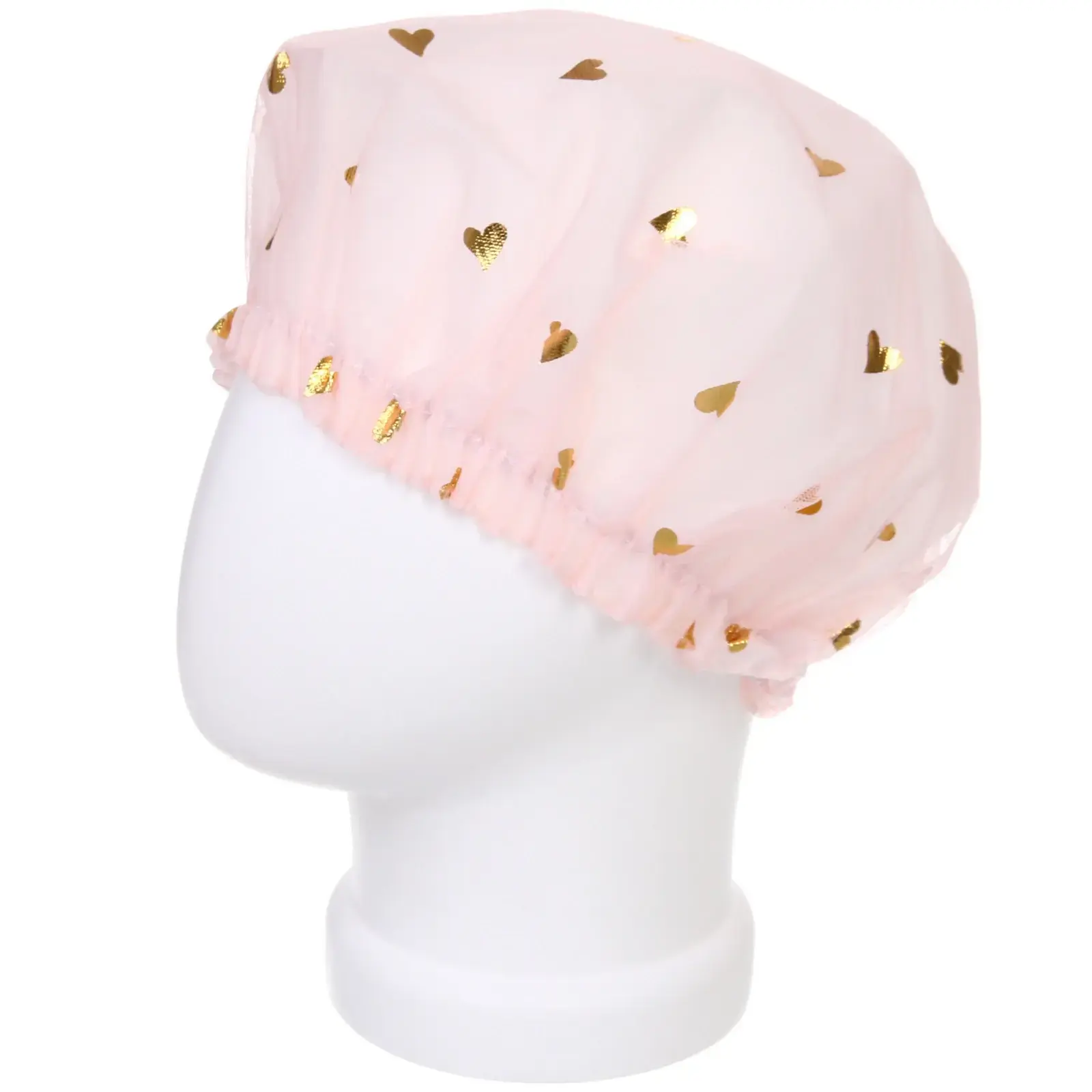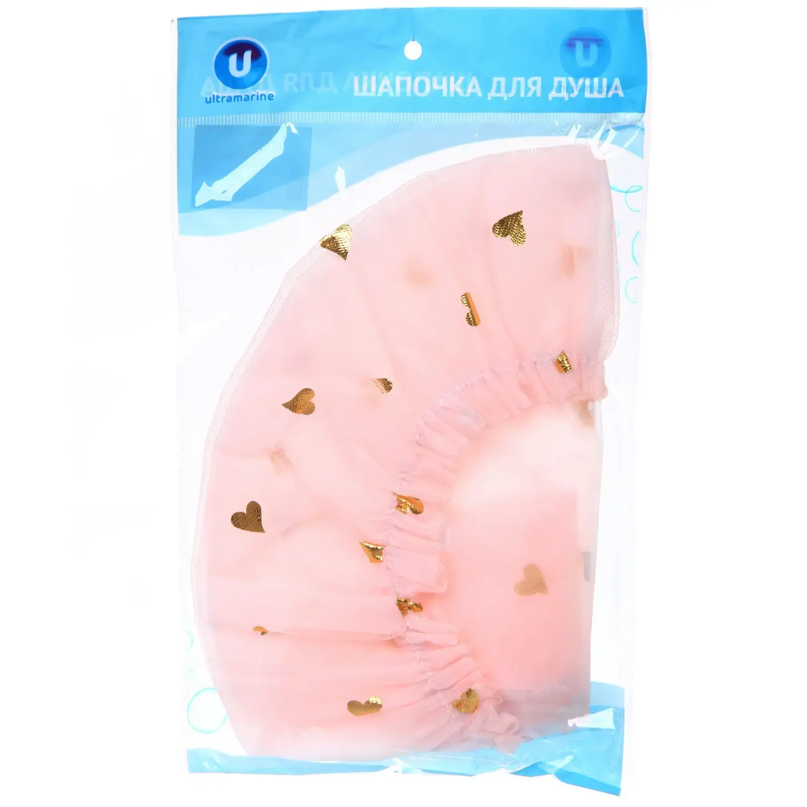 Шапочка для душа влагонепроницаемая «ЭКЛЕР», пудровый цвет с золотыми сердечками, диаметр 25 см, бренд Ultramarine