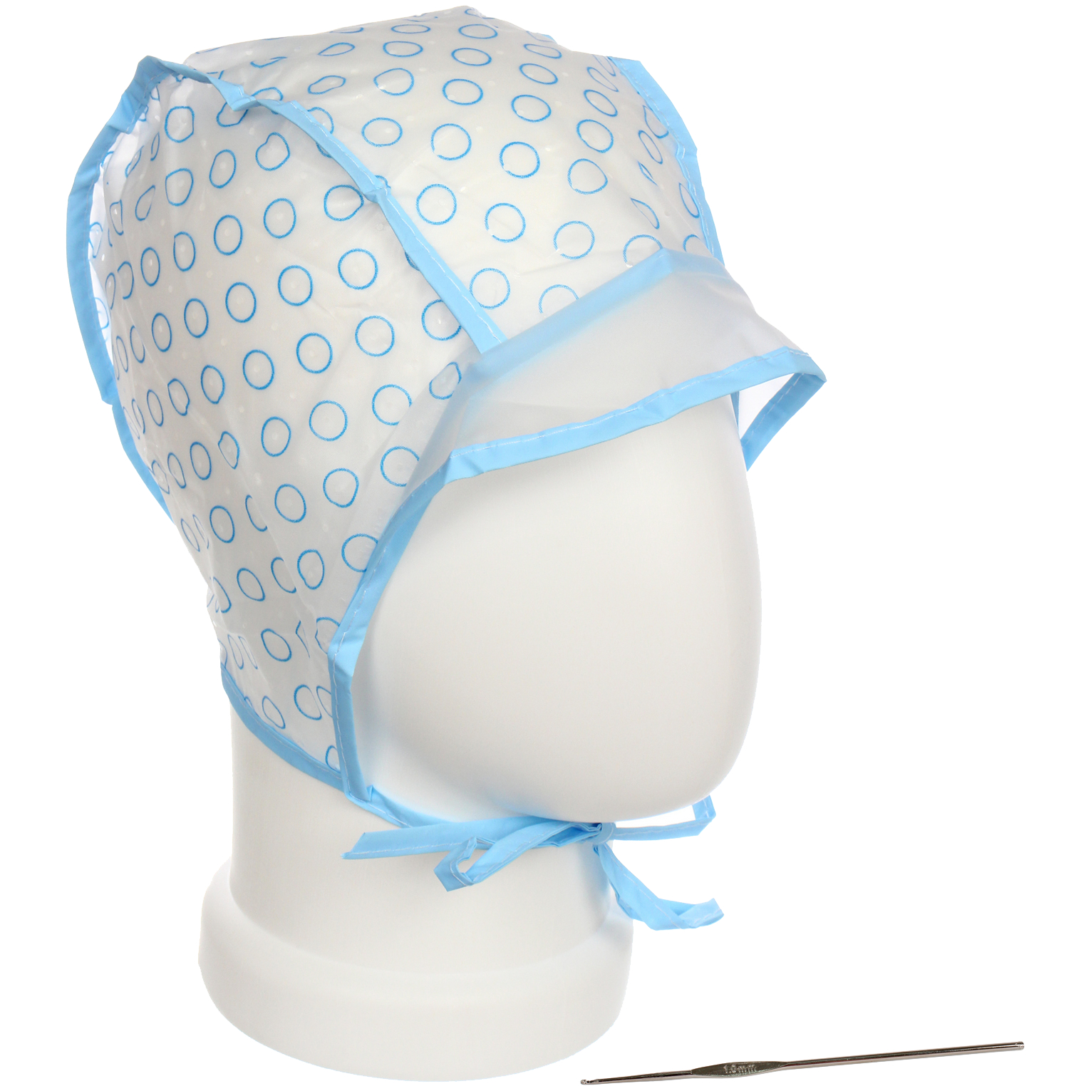 Шапочка выполнена из качественного ПВХ и дополнена металлическим крючком, что обеспечивает долговечность и удобство использования. Прозрачная смотровая часть (как показано на изображениях 1, 3, 4, 6, 8) позволяет контролировать процесс окрашивания, а продуманная конструкция обеспечивает плотное прилегание к голове, предотвращая вытекание краски. Игла, входящая в комплект (изображение 2), с четкой маркировкой "1.0 mm", идеальна для точного вытягивания прядей, что особенно важно при создании тонких и равномерных линий цвета. Шапочка предназначена для одноразового или многократного использования (в зависимости от ухода), обеспечивая гигиеничность и безопасность процедуры.