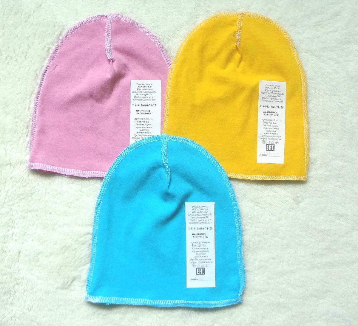 Шапочка детская "Ириска", колпак из кулирки, 100% хлопок, мягкая и удобная, в ассортименте