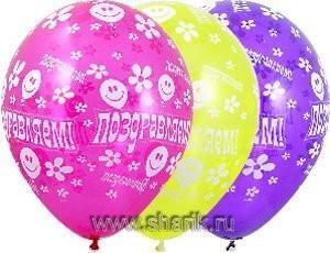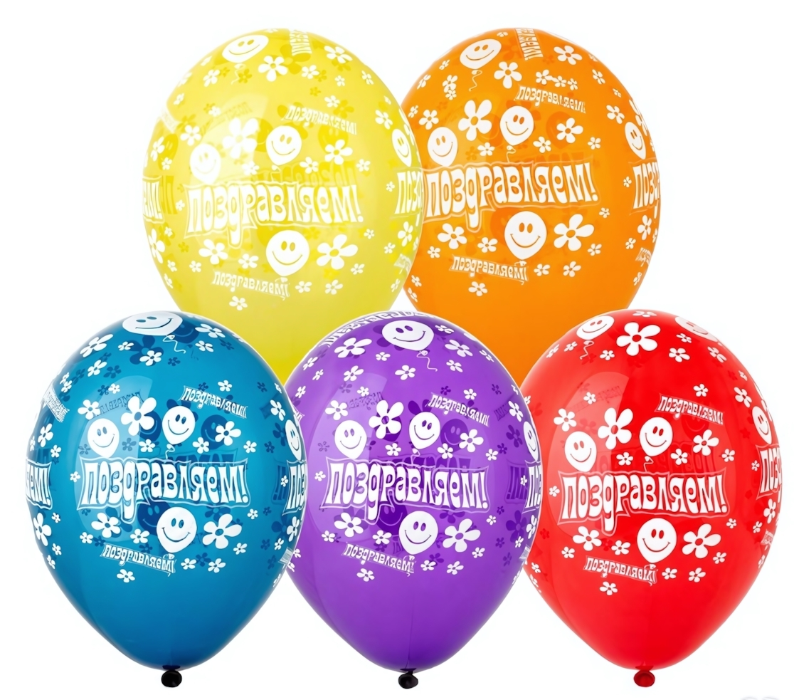 Шары латексные 14'' с шелкографией 'Поздравляем!', набор 25 шт, разноцветный принт 6-8 цветов