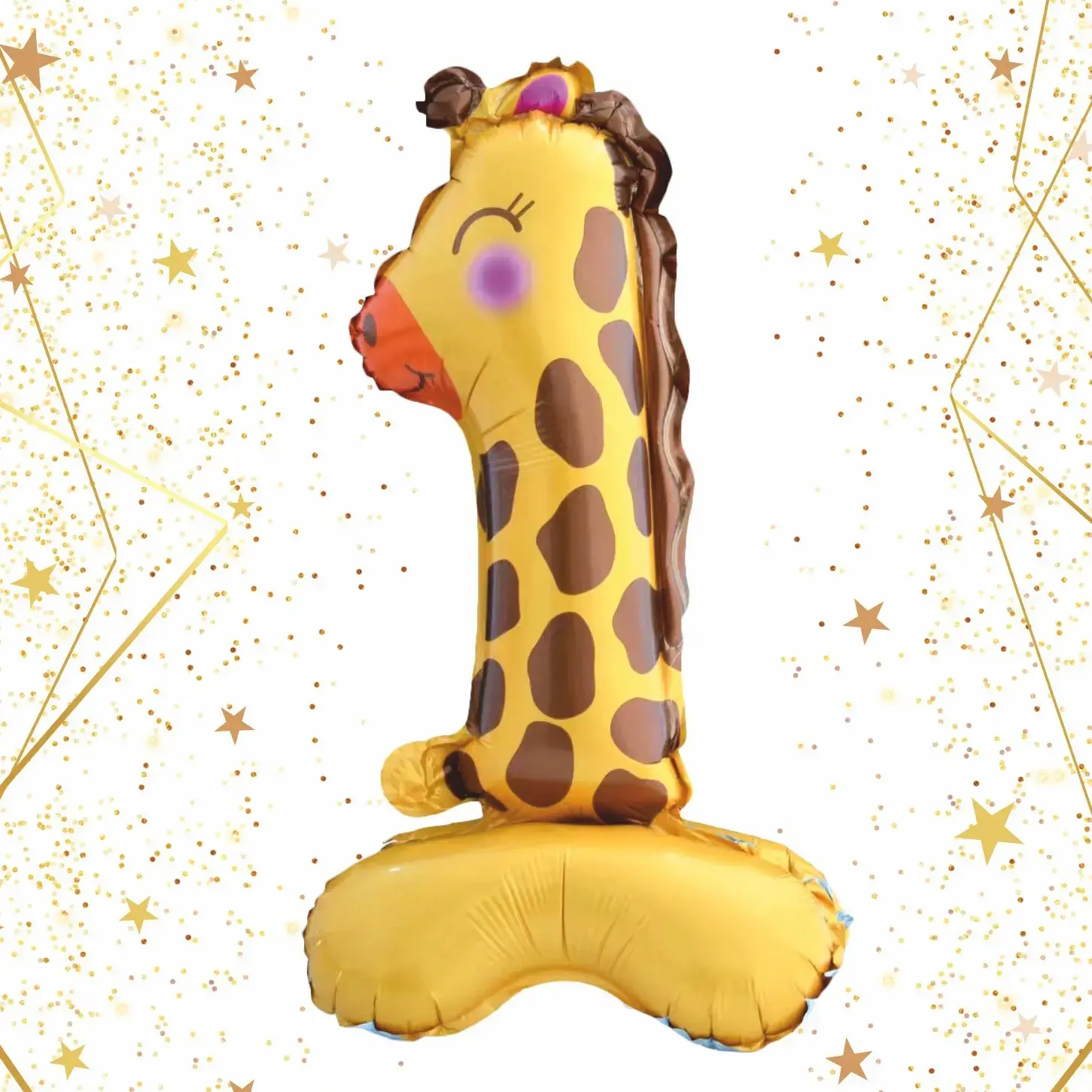 Фольгированный шар в форме цифры 1, стилизованный под жирафа, станет ярким акцентом на любом детском празднике или дне рождения.
