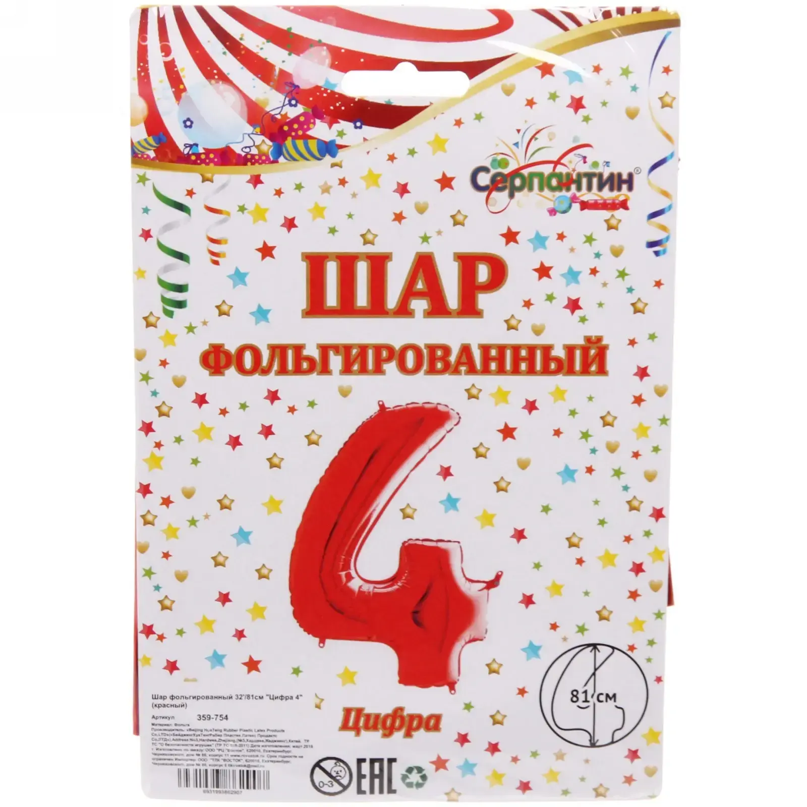 Яркий фольгированный шар «Цифра 4» для вашего праздника