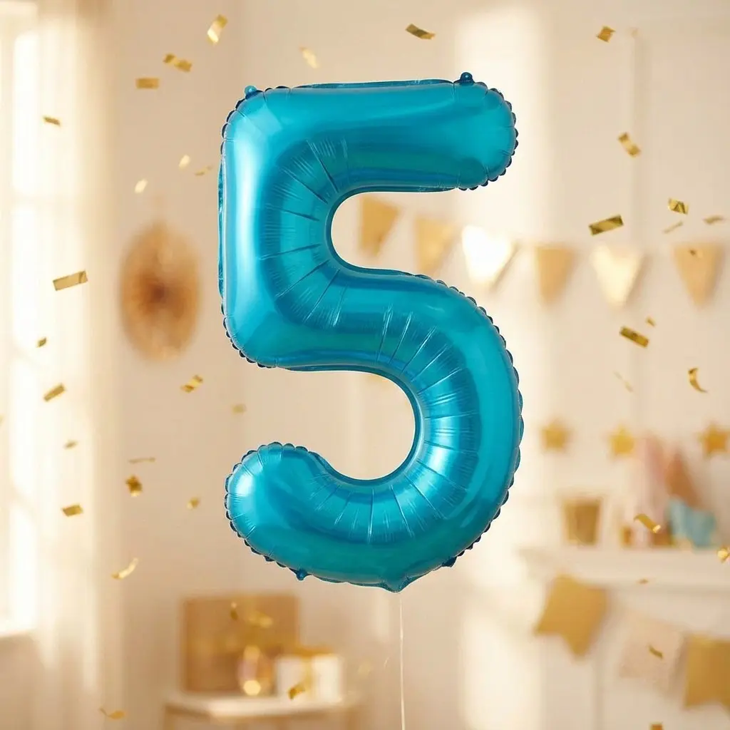 Создайте незабываемую атмосферу на вашем празднике с помощью этого великолепного фольгированного шара в форме цифры «5». Яркий голубой цвет и глянцевая поверхность делают его идеальным украшением для дней рождения, юбилеев и других торжеств. Этот шар станет центром внимания на любом мероприятии, добавляя радости и веселья.