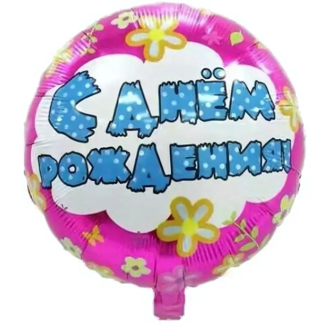 Праздничный фольгированный шар размером 45 см с надписью 'С днём рождения' станет ярким акцентом на любом торжестве. Его ярко-розовый цвет и цветочные узоры создают атмосферу радости и веселья, что делает его незаменимым атрибутом для празднования дня рождения. Этот шар не только украсит ваш праздник, но и поднимет настроение всем присутствующим!