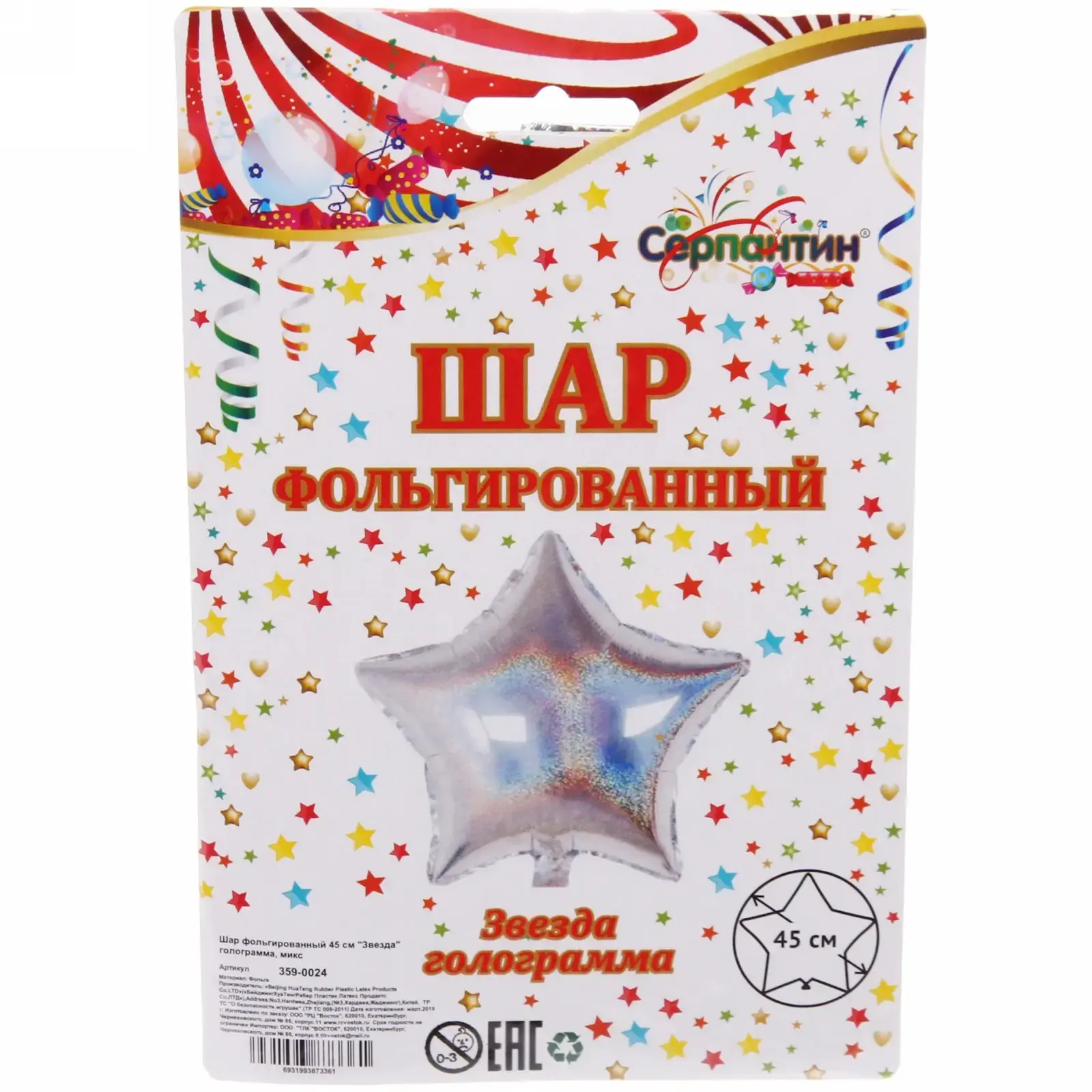 Размер шара составляет 45 см, что делает его заметным элементом декора. Серебристый цвет с голографическим эффектом отлично сочетается с другими цветами и стилями оформления. Этот шар станет отличным подарком или дополнением к вашему празднику, создавая атмосферу веселья и радости.