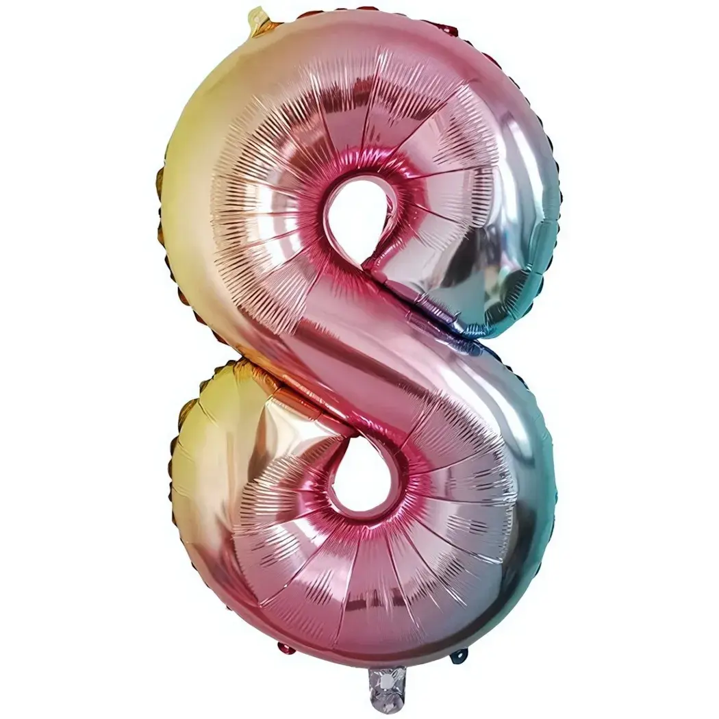 Создайте незабываемую атмосферу на вашем празднике с помощью фольгированного шара в форме цифры 8. Этот шар, размером 81 см, выполнен в радужных цветах, плавно переходящих от розового к голубому, что добавляет яркости и веселья в любое торжество. Он станет отличным акцентом на дне рождения, юбилее или любом другом празднике.