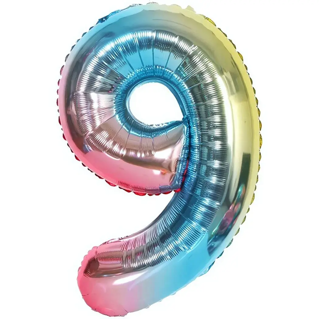 Этот яркий и стильный фольгированный шар в форме цифры 9 станет настоящим украшением любого торжества. С его помощью вы сможете создать незабываемую атмосферу на дне рождения, юбилее или другом важном событии. Радужный градиент от розового к голубому с металлическим блеском придаст вашему празднику особый шарм и яркость.