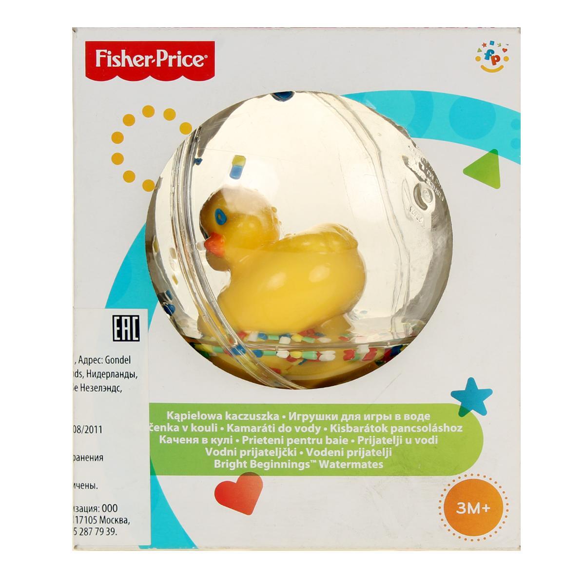 Шар с плавающей уточкой Fisher-Price, диаметр 8см, цвет желтый