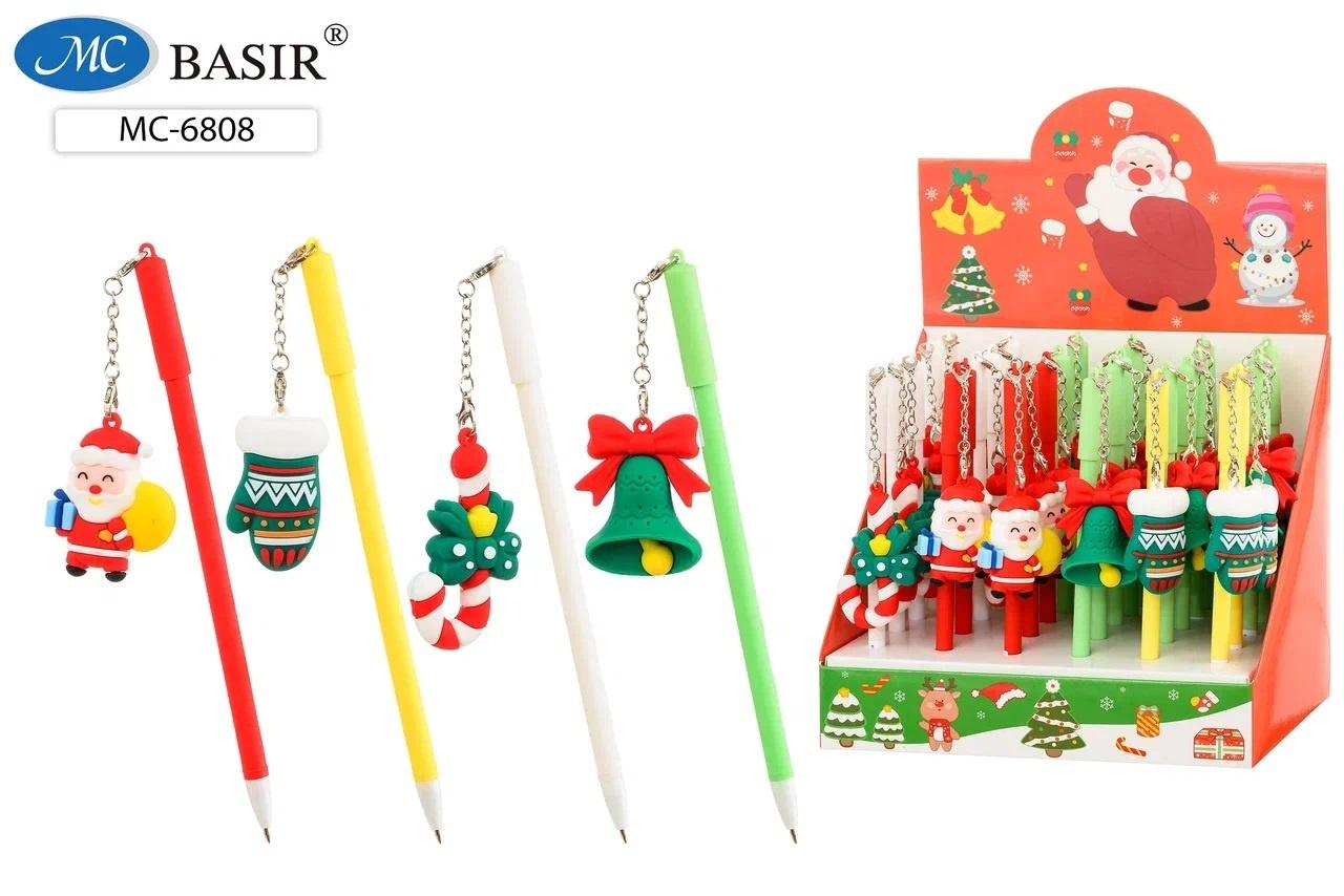 Шариковая ручка синяя с новогодним брелоком, детская, ассорти, Basir