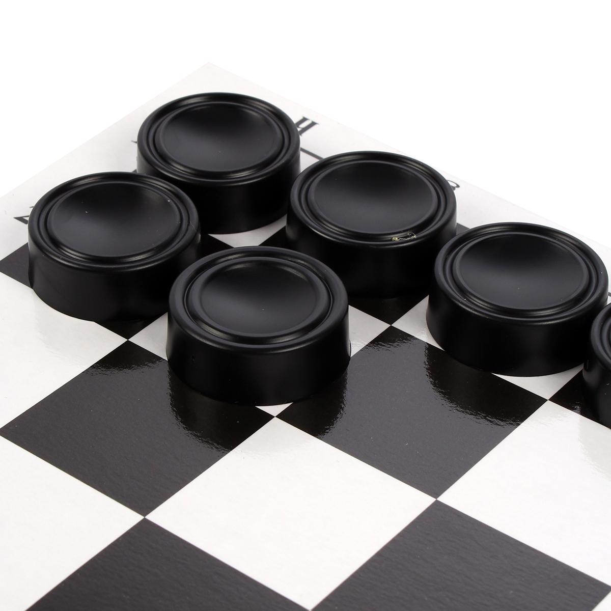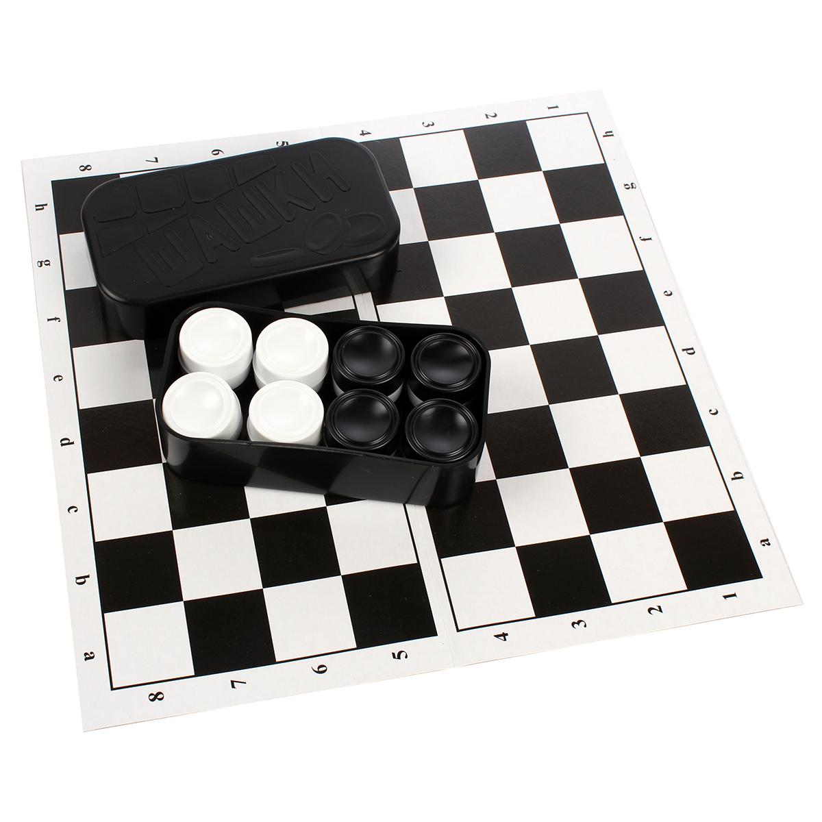 Компактный набор шашек с прочной доской — идеальный спутник в путешествиях и домашних вечерах. Удобный размер коробки поместится даже в дорожную сумку, а яркий контраст клеток сделает игру комфортной для зрения.