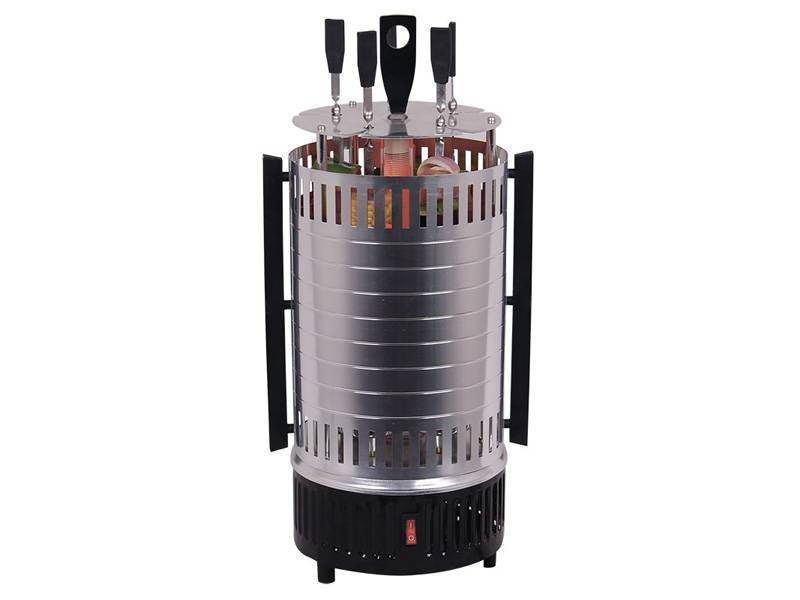 Шашлычница электрическая ENERGY HEBA-1 1000Вт • 5 шампуров • 5 чашек для сбора сока • защитный алюминиевый кожух • автоматическое вращение • нагревательный элемент защищен стеклянной трубкой • легкомоющиеся съемные детали • масса одновременной загрузки - не более 1 кг • время приготовления шашлыка - около 15 мин • мощность - 1000Вт