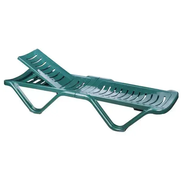 Шезлонг садовый с регулируемой спинкой, пластик, зеленый, 192х32 см, прорези для вентиляции