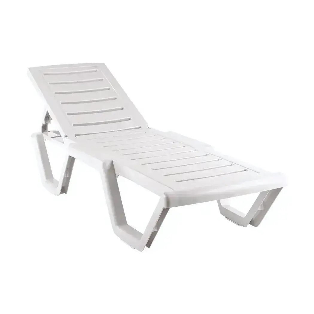 Шезлонг "Атлант" с регулируемой спинкой, пластик, белый, 184х33см, для сада и пляжа