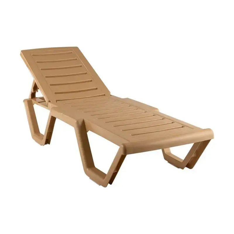Классический бежевый оттенок гармонично впишется в любой ландшафтный дизайн. Широкая рабочая поверхность (58 см в самой широкой части) позволяет комфортно расположиться людям разного телосложения. Боковые ограничители предотвращают соскальзывание подушек и пляжных принадлежностей.