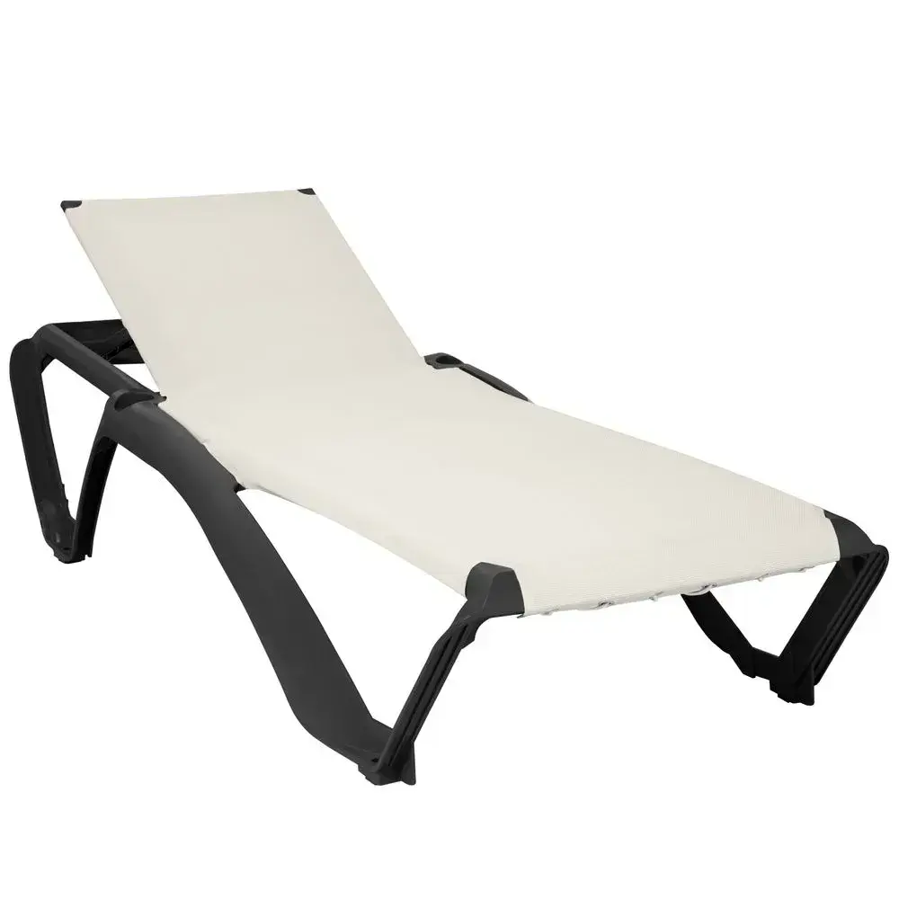 Шезлонг MIAMI с регулируемой спинкой, ткань слоновая кость/каркас антрацит, 191.5х39см